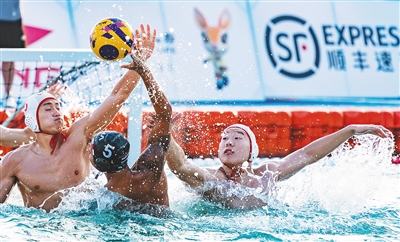 4月26日,第六届亚洲沙滩运动会男子水球单循环决赛中,中国队3比0战胜泰国队。海报集团全媒体中心记者 宋国强 摄